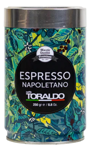 Caffe Toraldo Espresso Napoletano café moulu le plus fin. Un mélange né de la rencontre entre de précieux cafés arabica d'Amérique centrale et des cafés robusta indiens sélectionnés, torréfiés et moulus selon l'ancienne tradition napolitaine.