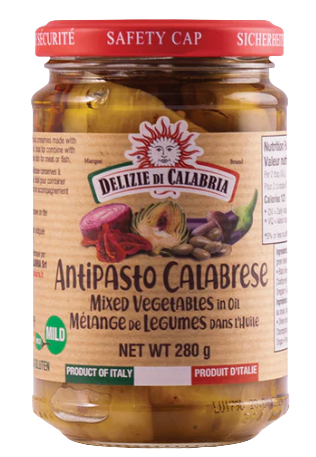 L'Antipasto Calabrese est une préparation culinaire authentique et délicieuse originaire de la région de Calabre, dans le sud de l'Italie. Cette spécialité est une sorte de confiture de légumes, soigneusement conservés dans de l'huile d'olive, ce qui leur confère une saveur riche et une texture tendre et fondante. Composée généralement d'une variété de légumes comme des poivrons, des courgettes, des aubergines, des tomates et des champignons, cette concoction est agrémentée d'herbes aromatiques méditerranéennes telles que le basilic, l'origan et l'ail, ce qui lui confère un arôme et un goût incomparables.