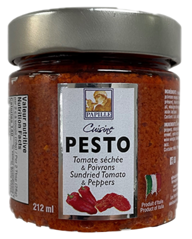 Découvrez ce pesto unique aux tomates séchées et poivrons rôtis, directement importé d'Italie. Ce mélange savoureux marie l’intensité des tomates séchées au soleil, la douceur légèrement fumée des poivrons rôtis, et la richesse de l'huile d'olive italienne. Naturellement sans gluten, il est parfait pour accompagner vos pâtes, bruschettas, ou pour ajouter une touche méditerranéenne à vos plats préférés. Une explosion de saveurs authentiques qui fera voyager vos papilles au cœur de l’Italie !