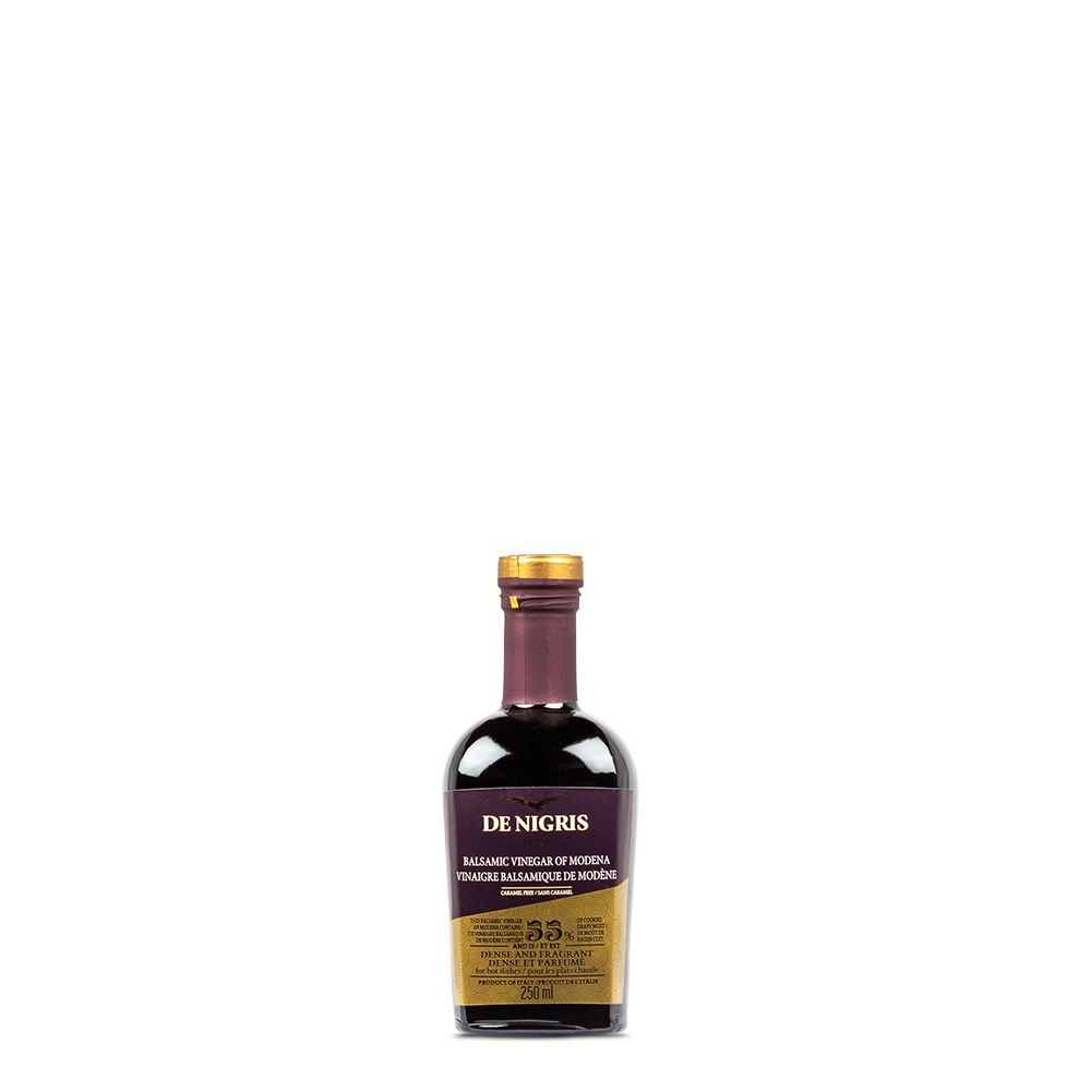 Le vinaigre balsamique de Modène De Nigris Gold Eagle est dense et parfumé, ce qui le rend parfait pour les viandes braisées et arrosé de fromages fins.