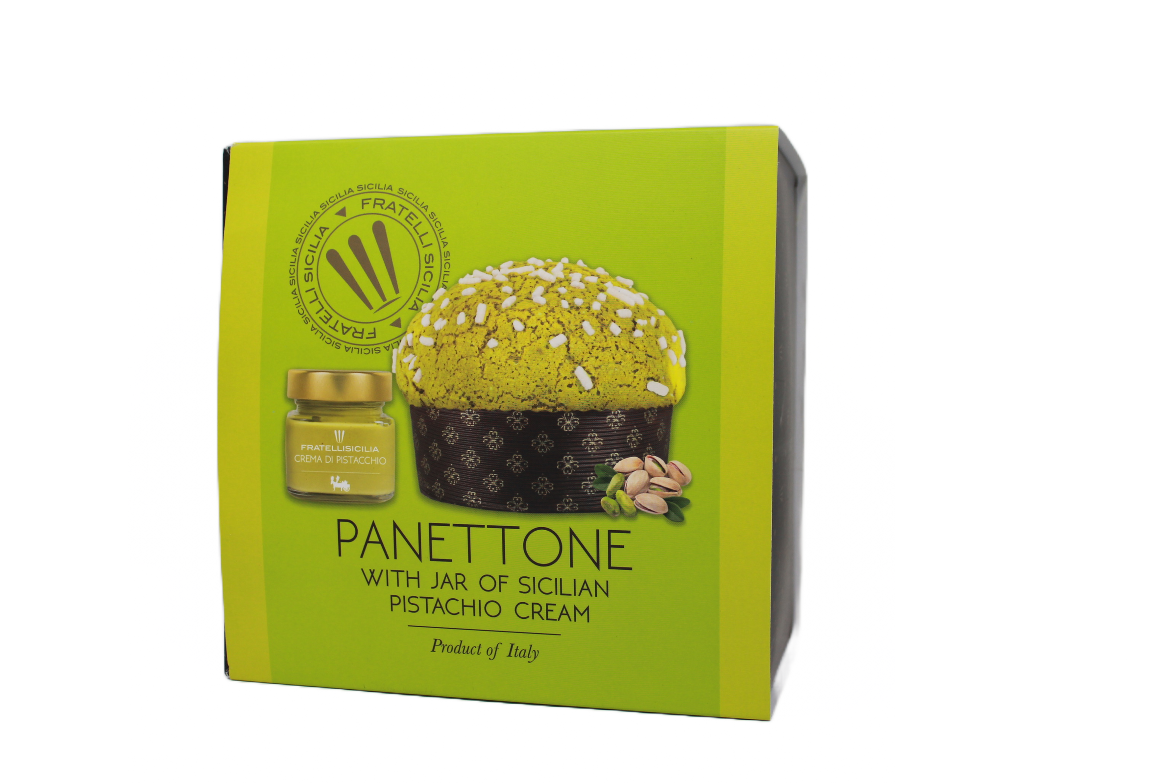 Panettone savoureux et parfumé, issu d'une fermentation lente et naturelle de 36 heures à partir d'un levain authentique. Une explosion de douceur qui libère un goût et des saveurs exquis, associée à une crème délicate à la pistache sicilienne la plus prestigieuse et la plus raffinée.