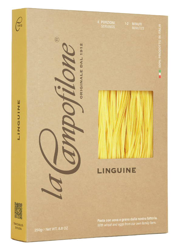 Ces pâtes fines aux oeufs sont probablement au sommet de notre liste d'importation italiennes coups de coeur. Elle sont cuites en moins de 5 minutes et ont la texture des meilleures pâtes fraiches d'italie.