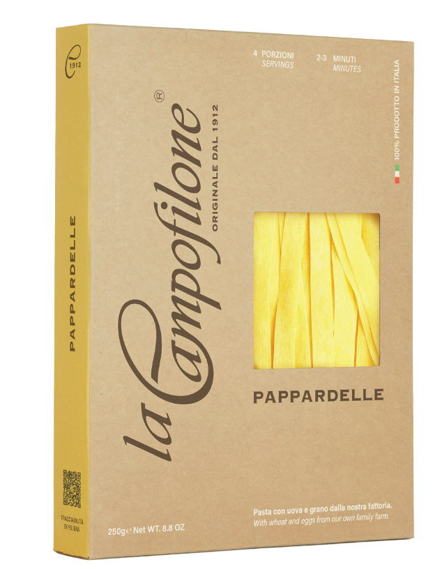 Le mélange de blé à haute teneur en protéines est vieilli à des températures contrôlées. Les méthodes traditionnelles transmises de mères en filles que prône la famille Rossi depuis 1912 permettent d'obtenir un produit à la fois savoureux, riche en protéines et facile à digérer. Sans colorant ni agent de conservation.
