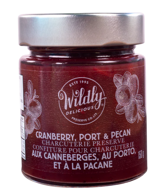 INGRÉDIENTS : Canneberges, sucre, porto, eau, vinaigre de merlot, huile de canola, raisins secs, amidon de maïs modifié, pacanes, arôme naturel de brandy, épices.