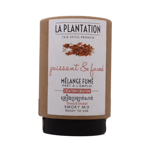 Un délicieux mélange de piment long doux fumé, d'ail, de poivre de Kampot et de fleur de sel. À utiliser en marinade sèche sur un steak ou du poulet. On l'adore badigeonné de beurre fondu et de jus de citron frais sur du saumon cuit au four. Dégustez-le en assaisonnement pour vos patates douces