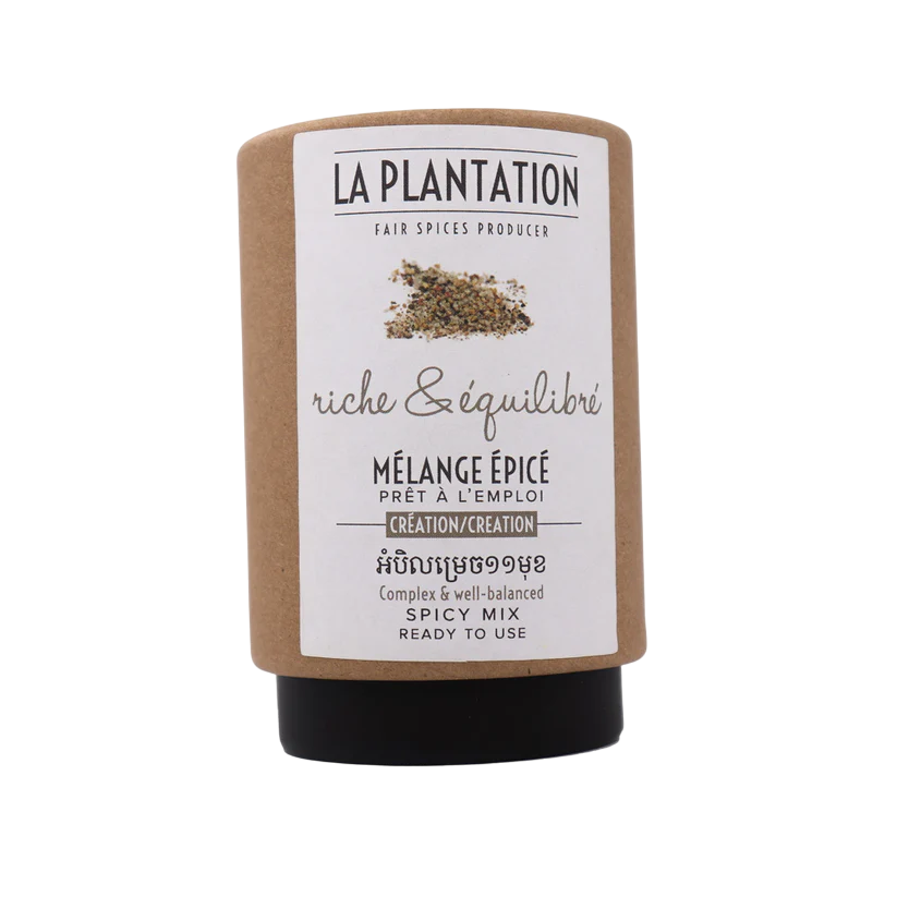 Ce mélange exquis de poivres de Kampot, d'épices et de fleur de sel vous ravira à coup sûr. Tel un bon vin, son arôme éveillera vos papilles.