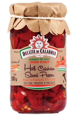 Le meilleur des poivrons de Calabre, coupés en tranches et conservés dans l'huile pour satisfaire les plus exigeants. Ce condiment épicé est idéal pour relever les pizzas, les pâtes, les sandwichs et tout plat qui mériterait une touche de piquant.