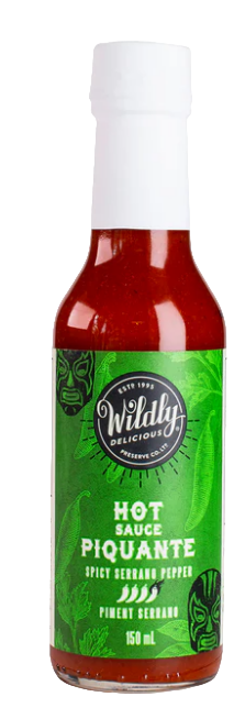 INGRÉDIENTS : Sauce piquante (piments de Cayenne vieillis, vinaigre, eau, sel, poudre d'ail), eau, pâte de tomate, vinaigre, poudre de chili mexicain (épices, sel, dextrose), piment serrano, moutarde, amidon de maïs modifié, sorbate de potassium, épices.
