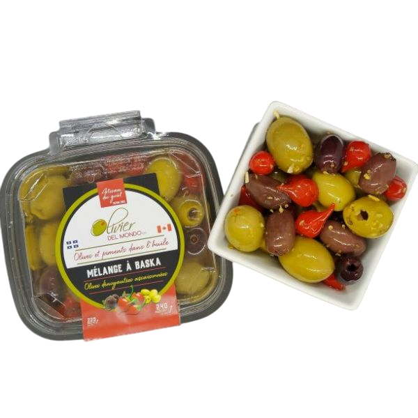 Mélange Baska, olives dénoyautés avec mini piments sucrés