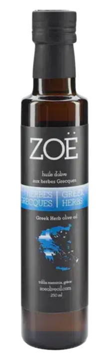 Nos olives koroneiki sont délicatement infusées avec nos herbes fraîches cultivées sur place. Les saveurs des herbes combinées à la fraîcheur poivrée de l'huile d'olive extra vierge sont délicieuses. Cette huile est particulièrement savoureuse avec les pâtes, le poulet, le poisson, le porc, les pommes de terre, la pizza et les légumes. Se marie à merveille avec toutes vos salades !