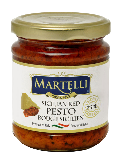 Cette recette traditionnelle sicilienne met en avant des ingrédients simples mais savoureux : tomates séchées au soleil, poivrons, pignons de pin, Grana Padano et basilic. Ce mélange d’ingrédients typiques de la cuisine sicilienne crée une explosion de saveurs authentiques.
