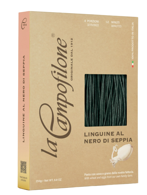 Fabriquées avec de la véritable encre de seiche liquide, sans colorants ni conservateurs, les Linguine à l'encre de seiche La Campofilone vous séduiront dès la première dégustation ! Il faut le voir pour le croire ! Elles ont un goût à la fois distinct et subtil.