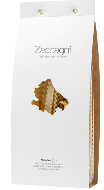 Les pâtes Mafaldine Zaccagni sont fabriquées uniquement avec de la semoule de blé dur de la meilleure qualité et de l'eau pure Majella. Le séchage lent et délicat à très basse température garantit un produit unique et précieux, parfait  pour les tables et les restaurants du monde entier.
